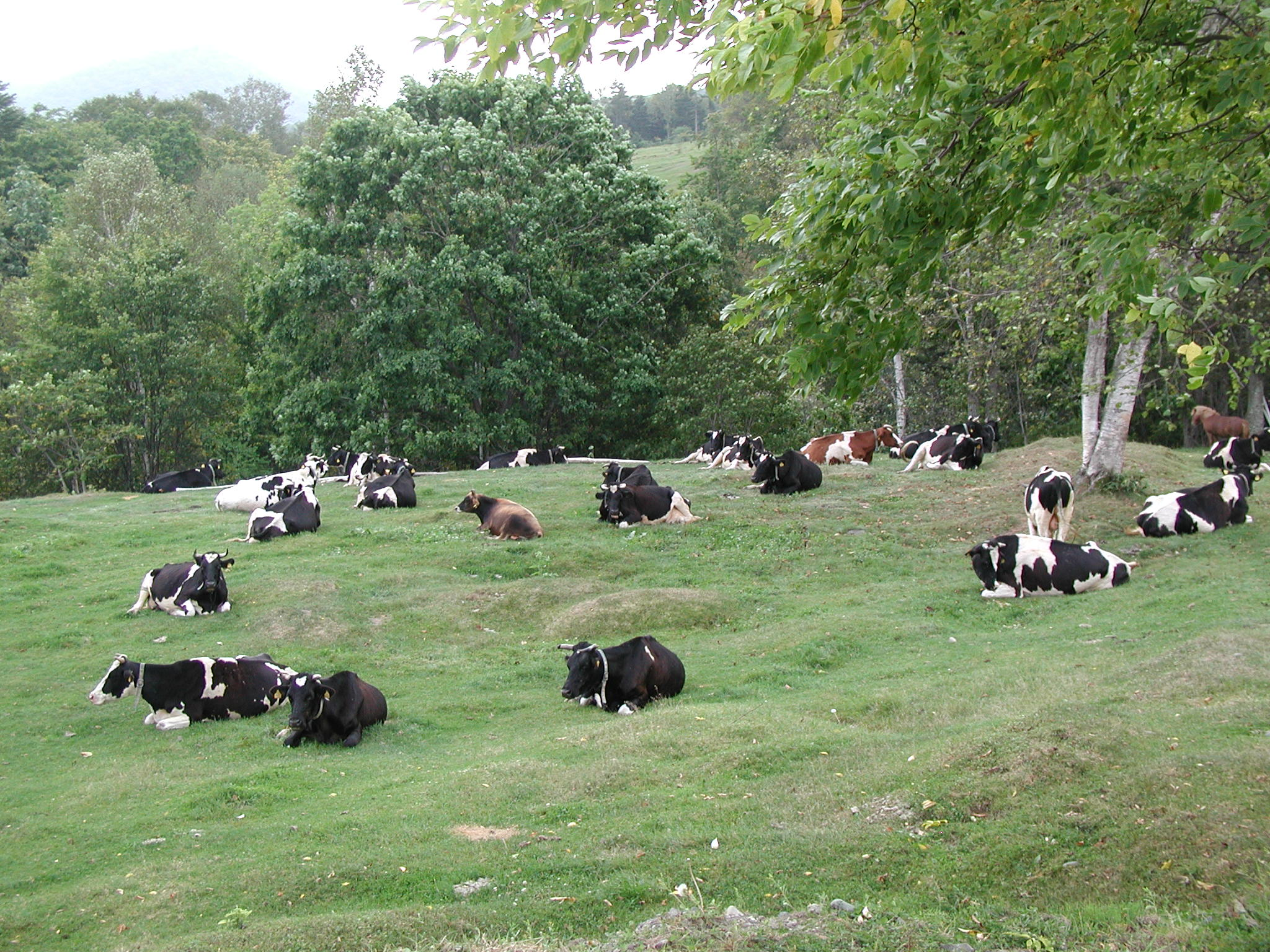 費用のかかる放牧地の整備は計画的に行います。変更しやすいように移動式の施設や機材の利用を考えます。野生動物の侵入は草地生産性を下げ、家畜防疫上も問題です。通路、水飲み場、出入口は泥濘化しやすく、急傾斜面に設置した牧柵や通路から土壌崩壊が起きることがあります。泌乳量が9000kgを超える牛は放牧では飼いにくいです。草をよく食べ、足腰が強く、乳質・乳量・繁殖成績が安定した牛を残します。草地の植生を改善して、草地からの栄養摂取量を高めます。