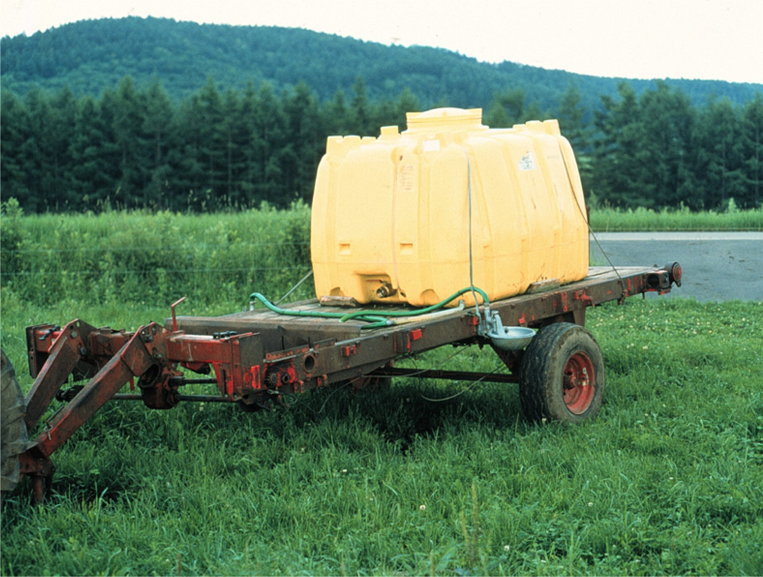 乳牛は暑熱に弱いため、放牧地にひ陰場所を設けます。ひ陰林は立木間隔が1.5~2.5m前後、面積4.5~5.0㎡/頭が標準とされています。ひ陰林は、吸血昆虫や風雨からの回避場所としても使われます。アブによる吸血は病気を媒介するだけでなく、大きなストレスとなり採食量の低下を招きます。アブの被害が大きいときは、アブトラップを設置します。簡易な自作タイプもあります。放牧地やパドックで鉱塩や貯蔵牧草を長期間給与する場合は、雨でぬれないよう工夫します。補助飼料を給与する施設の周りは泥濘化対策をするか簡単に移動できるタイプを検討します。