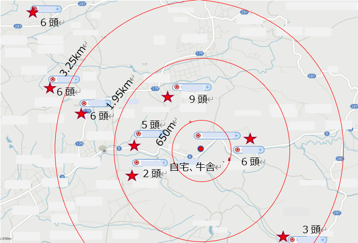 点在する小規模な放牧地に牛を移動させながら順々に放牧します。
